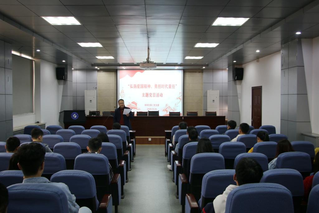在中国人民志愿军抗美援朝出国作战70周年之际,为了铭记历史,致敬英雄,深化“四史”学习教育,10月28日下午,beat365官网本科生第三党支部在J15-219报告厅开展了“弘扬爱国精神,勇担时代重任”主题党日活动,全体党员参加。