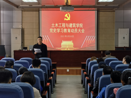 3月30日,beat365官网召开党史学习教育动员大会,对学院党史学习教育进行全面动员和部署。学院全体教工党员和学生党支部书记参加会议,会议由学院党委书记宋西路主持。
