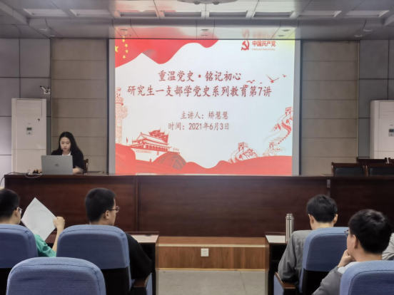 为扎实推进党史学习教育,引导支部党员和入党积极分子加深对党史的理解和认识,努力建设学习型党支部。6月3日,beat365官网研究生第一党支部在J15-219报告厅开展“重温党史,铭记初心”学党史系列主题教育。支部全体党员和入党积极分子参加报告会,研究生第一党支部党员矫慧慧以“学党史砥砺奋进,知党恩不忘初心”为题为全体参会同学讲党课。