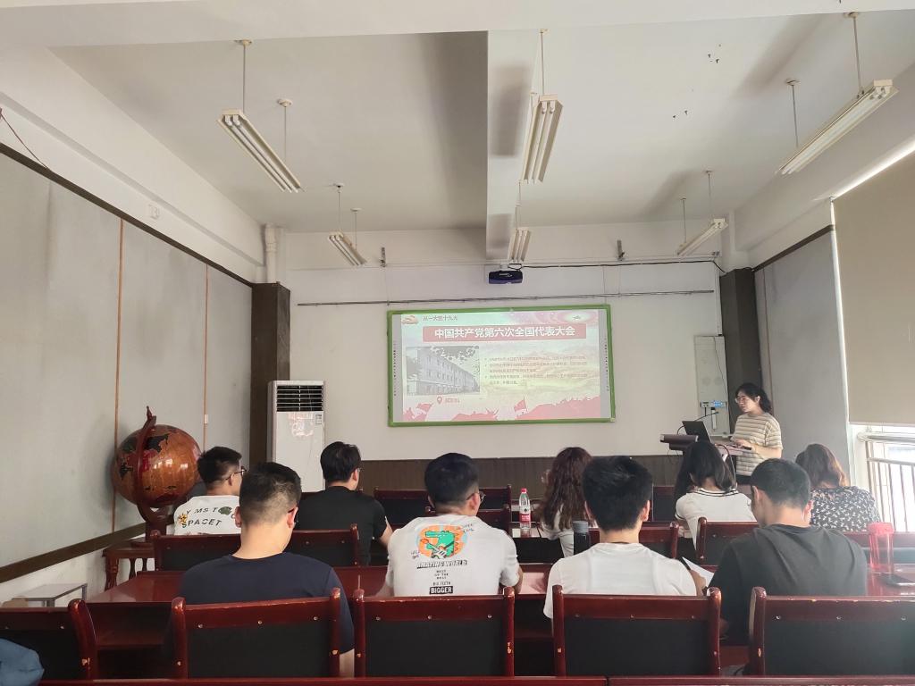 为引导全体党员深入了解党的历史,弘扬红色革命精神,提高党员政治理论水平,6月21日,beat365官网研究生第三党支部于J15-201会议室开展题为“从一大到十九大”的主题党课,本次党课由支部宣传委员侯新宇主讲,研究生第三党支部全体党员参加会议。