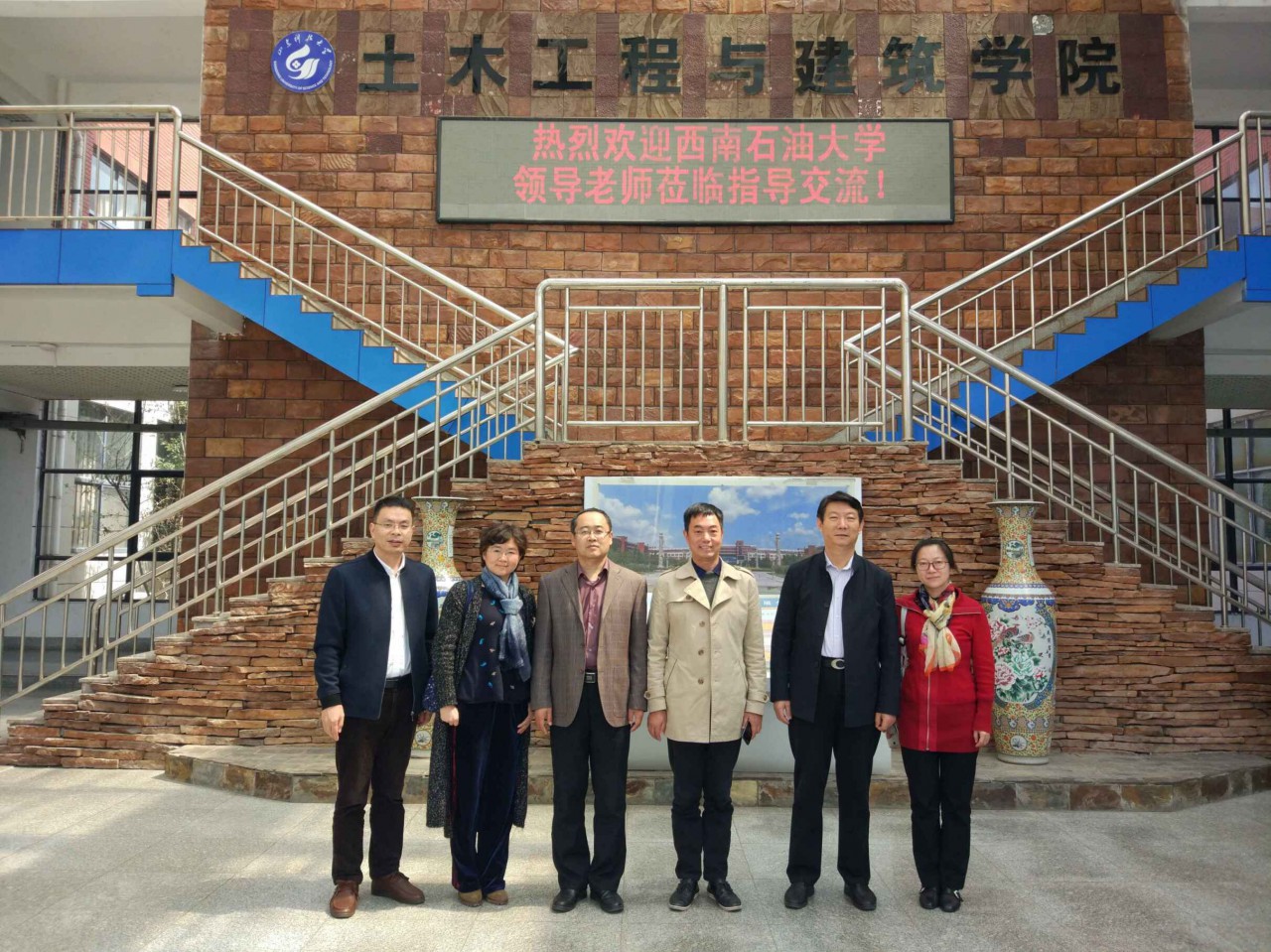 4月4日上午,西南石油大学beat365中文唯一官网党委书记曾明友,建筑工程教研室副教授、教授委员会成员蒲万丽,教研室主任、副教授邓夕胜,建环教研室讲师侯向秦一行4人到beat365官网进行交流调研,beat365中文唯一官网beat365官网党委书记张东、院长王崇革、院长助理李朋及相关系主任参加了此次座谈会。