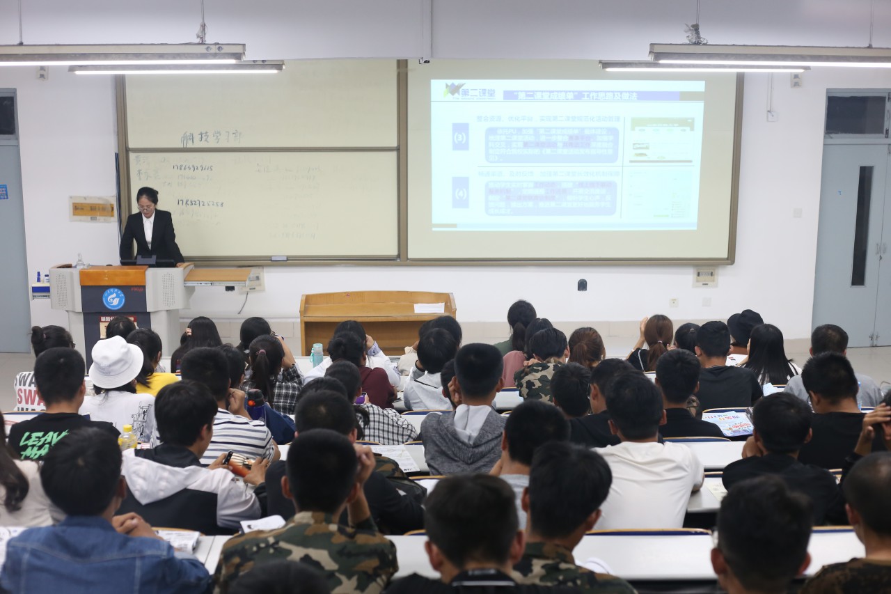 活动伊始,PU工作站站长为新生们介绍了“第二课堂成绩单”的开展背景,分别指出第一课堂——教学与第二课堂——活动存在的问题,并借此指出“第二课堂成绩单”的开展依据。随后,站长简要介绍了“第二课堂成绩单”的目的及意义。紧接着,为了使新生更深层次的了解PU工作站和第二课堂,站长结合学院各部门开展的系列活动介绍了“第二课堂成绩单”的工作思路及做法,阐述了学院第二课堂工作的一个核心、两类学时、三级组织、四大理念、五类课程等具体内容。最后,站长结合去年PU工作站的开展情况,进一步介绍了本学年“第二课堂成绩单”的规划。会上,学院新生认真聆听,仔细记录,宣讲会取得圆满成功。