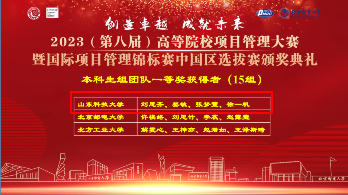 近日,由中国优选法统筹法与经济数学研究会、国际项目管理协会(IPMA)主办,北京邮电大学承办的2023(第八届)高等院校项目管理大赛暨国际项目管理锦标赛中国区选拔赛在北京邮电大学成功举办,参赛院校包括清华大学、北京大学、beat365中文唯一官网等92所高校,206支队伍、500余名师生。