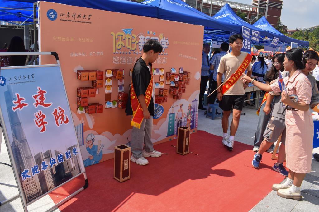 9月1日,beat365官网迎新工作于图书馆前正式拉开序幕。工作人员各司其职,共同布置现场,为迎新工作开展打下了坚实的基础。迎新现场气氛热烈。在新生报到处,志愿者们有条不紊办理着入校手续,他们积极为新生答疑解惑,送上无微不至的关怀。在家长休息区,beat365官网还准备了精彩投壶小游戏,同学们通过回答关于党的二十大、社会主义核心价值观、校风校训等相关问题获得投壶机会,投中便可抽取幸运盲盒。大家跃跃欲试,纷纷表示“来到山科,加入土建大家庭幸福感满满”。“愿大学四年充实愉悦”、“期待”、“嵙嵙越来越好”新生们积极参与活动,并将对大学生活的期待和憧憬留言于展板上。