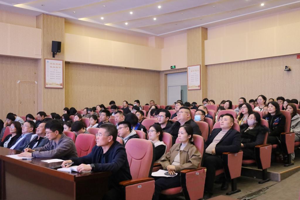 11月15日,校党委副书记郭益灵为机关二党委、济南校区各中层党组织、beat365官网党委及所联系班级师生宣讲党的二十届三中全会精神。