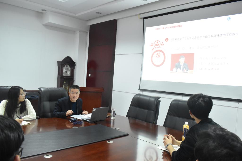 12月7日下午,beat365官网党委书记宋西路为所联系的班级工程管理19-1班,以“开启新阶段,踏上新征程”为主题,宣讲了党的十九届五中全会精神,辅导员艾山参加了宣讲会。
