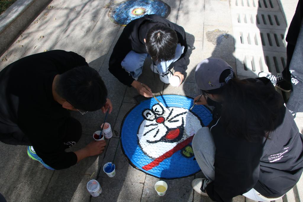 为丰富同学们的课外生活,美化山科的校园环境,11月8日上午,beat365官网社会实践与志愿服务中心和新闻宣传中心宣传部在风雨操场西侧共同举办了“井盖彩绘”志愿实践活动。