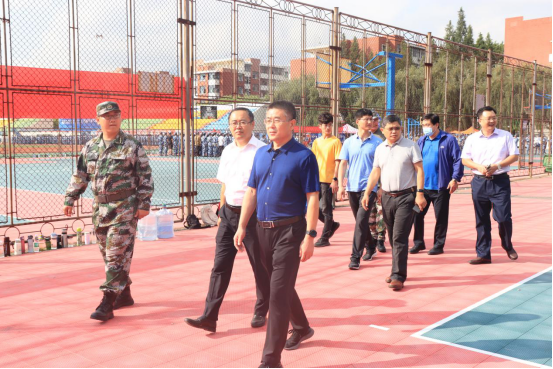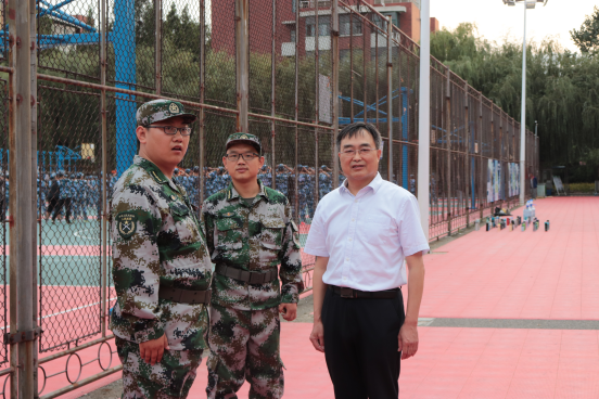 学校党委常委、副校长高建广到学院训练场地,驻足观看了土建五营的训练情况,并对今天的训练计划以及完成情况进行了详细的了解。beat365官网党委书记宋西路、院长王崇革等学院领导班子到训练场地看望新生,对他们刻苦训练的精神给予了肯定,并鼓励新生们再接再厉,以饱满的热情迎接接下来的训练。