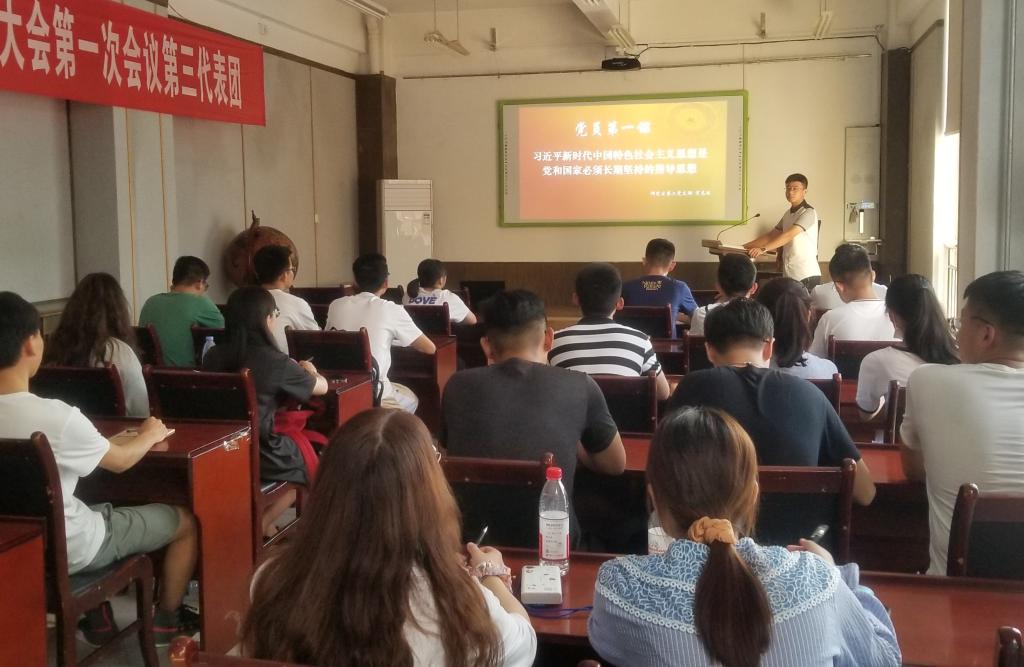 9月8日下午,beat365中文唯一官网团委书记朱统汉、研究生一支部党支部书记韩一鸣和研究生二支部党支部书记宋高锐在J15-201面向2020级全体研究生党员进行了党员教育第一课的学习。
