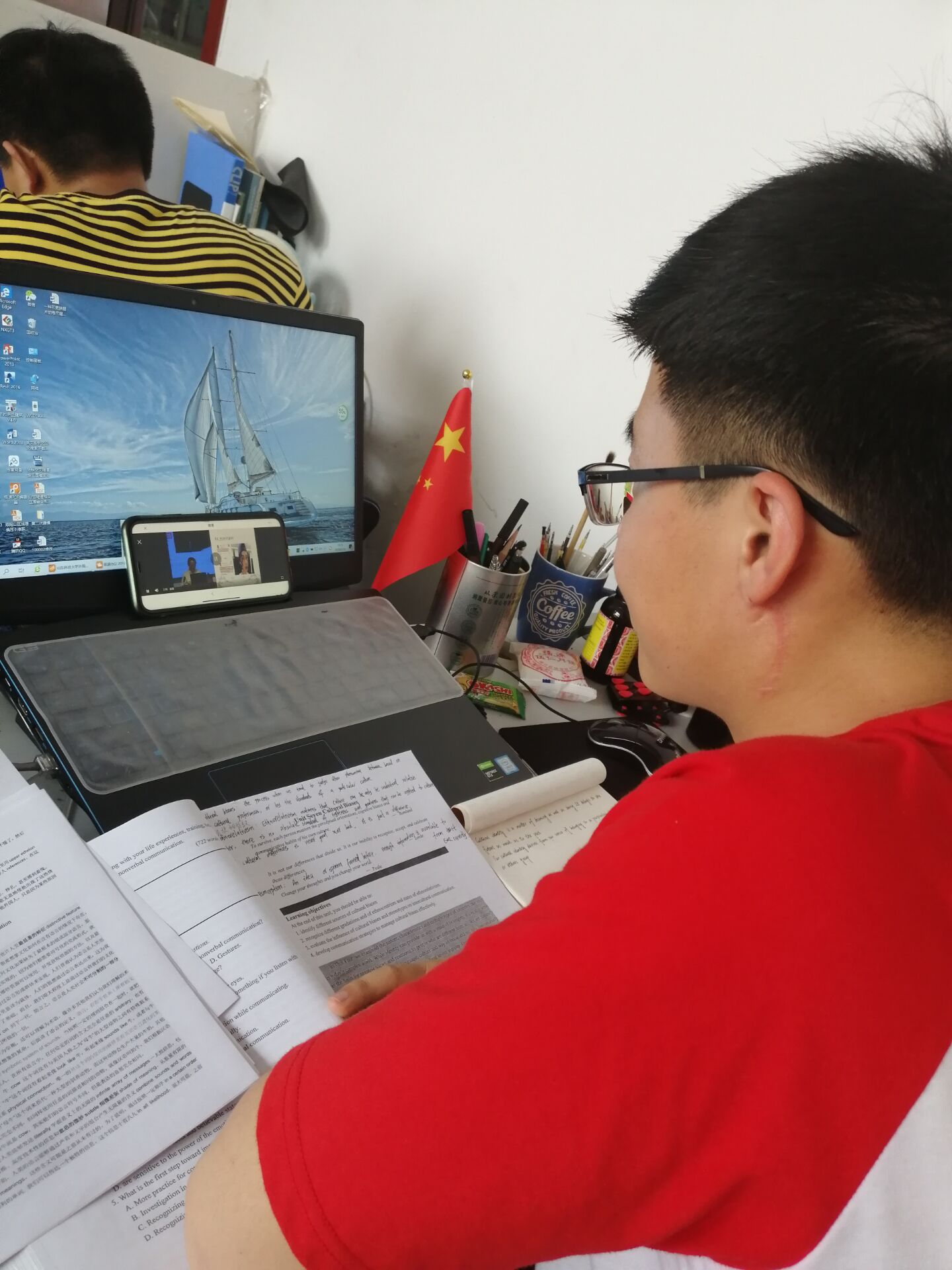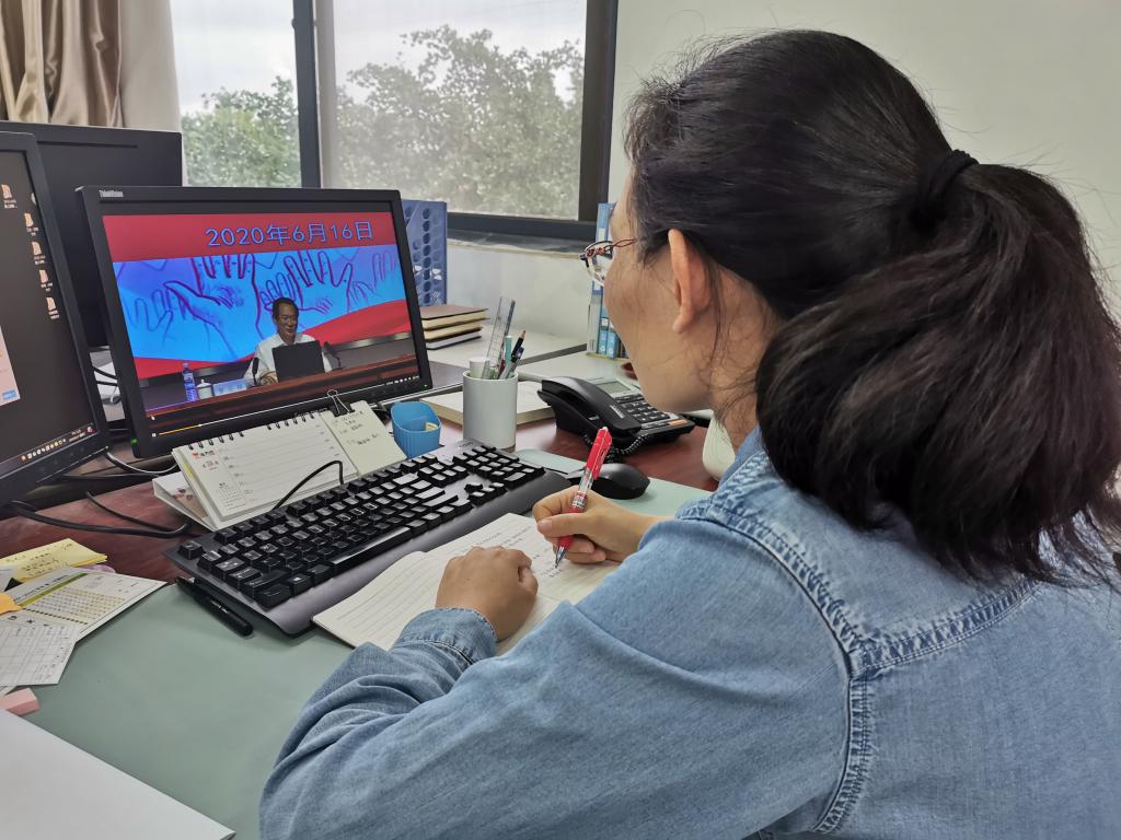 6月16日,beat365官网组织部分返校学生于J7-215教室收看校党委书记罗公利以“在战‘疫’中我们一起成长”为题的精彩思政课。学院全体学工干部、剩余返校学生、未返校学生均通过网络平台共上思政大课。