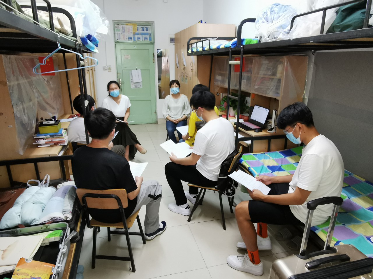 高静副书记亲切了解学生返校情况和在校需求,向同学们介绍学校学院为疫情防控和学生返校做的各项准备,并对返校学生提出三项要求。一要强化意识,严格遵守学校学院疫情防控各项要求,主动积极配合各项工作,杜绝懈怠、敷衍情绪;二要劳逸结合,返校后既要按时上课,认真学习,又要通过运动、阅读等方式调节自我情绪和心理;三要响应习近平总书记的号召,牢记“青春由磨砺而出彩,人生因奋斗而升华”。随后,张翌为同学们讲解“开学第一课”,讲解疫情防控知识和学生在校期间日常管理制度,贴心地提醒同学们在校学习生活中需要注意的事情。