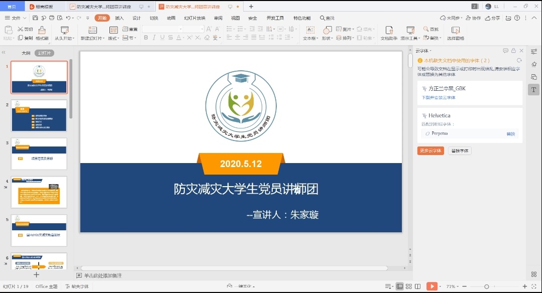 讲座伊始,尚军对学院关于开展“提升基层应急能力,筑牢防灾减灾救灾的人民防线”主题教育活动进行了安排部署,向全院师生发起“筑牢防灾减灾救灾的人民防线”的倡议,号召各班级充分利用各种网络平台,通过开展主题班会、空中课堂等形式,组织全体同学认真学习学校相关文件精神,观看防灾减灾教育视频,有针对性、实效性地开展防灾减灾宣传教育活动,强化防灾避险的意识和能力,确保防灾减灾科普教育覆盖率达到100%。随后,讲师团团长朱家璇从地震基本常识、地震活动与地震灾害特点、震中自救方面、防灾减灾思考等四个方面进行了讲解,结合近期发生的小珠山火灾案例,与同学们共同探讨了在火灾自救中应注意的事项,并进一步拓展了有关洪涝、气象、风雹等自然灾害知识和防范措施。