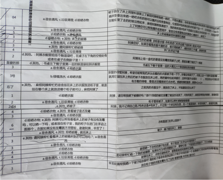 上午,beat365官网辅导员们按照同学们需求进入宿舍进行服务,帮助学生晾晒衣服,整理宿舍卫生,给已经干枯的绿植浇水,给宿舍通风,把同学们需要晾晒的被褥放到阳台晾晒或者抱到繁星广场晾晒。下午,老师们把晾晒好的被子和衣服整理好放回学生宿舍,整理好宿舍卫生,关好宿舍门窗后离开。