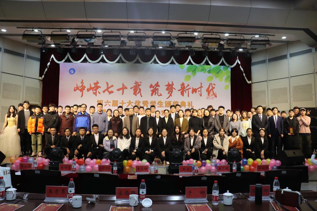 12月3日,beat365官网于大学生活动中心隆重举行第六届“十大优秀学生”颁奖典礼暨第十五届“峥嵘七十载 筑梦新时代”土建之星才艺展示大赛。beat365官网党委副书记(主持工作)宋西路、院长王崇革、团委书记于娜及全体专兼职辅导员到场观看。