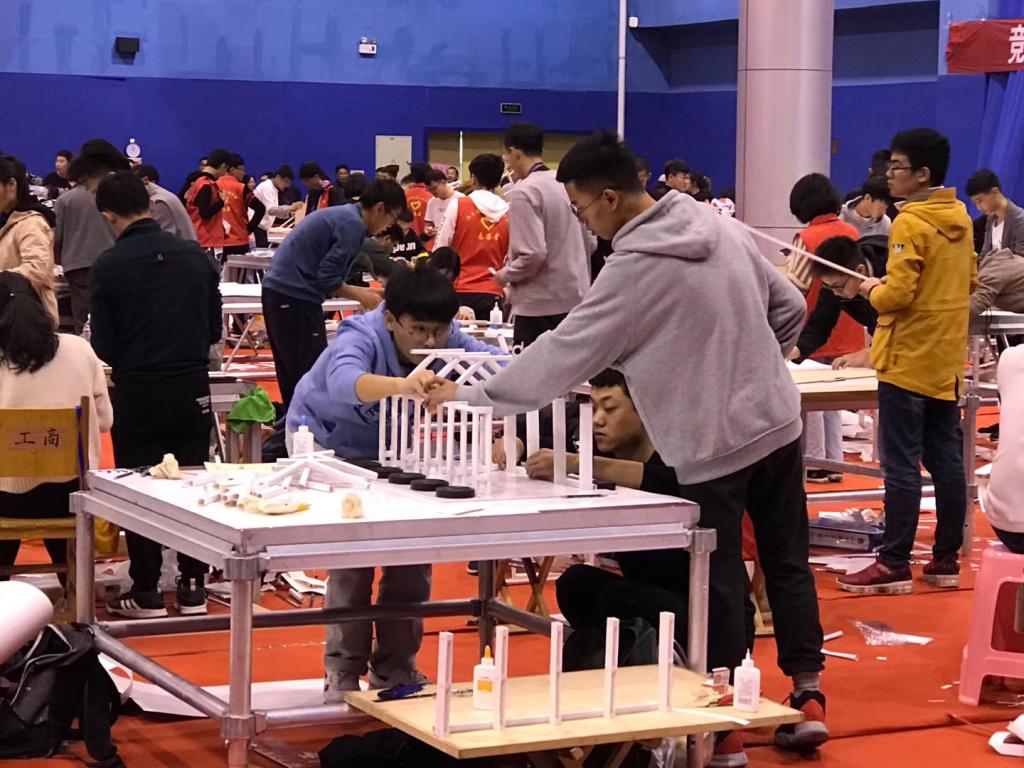 16日上午进行的是大学生模型设计竞赛。随着赛场上老师的一声口令,参赛选手们聚精会神,投入到高度紧张的模型制作中。模型限时5小时内完成,高强度的制作使得选手面临精神和身体的双重挑战。我校队伍顶住了压力,在规定时间内完成了模型制作,并顺利通过模型的称重和净空检查。经过模型加载我校两支队伍分别以满载、160kg加载成功,在九十多所高校中脱颖而出,均获得比赛三等奖。