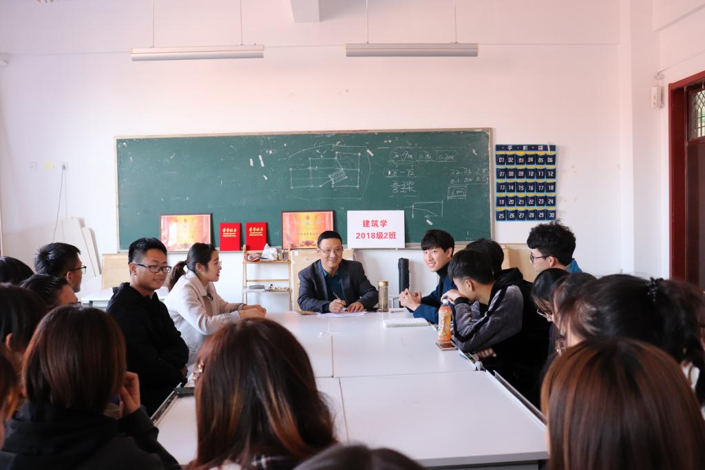 11月8日,beat365官网副院长张宪堂参加了建筑学18-2班班会,该班级为领导干部深入基层联系学生的对接班级。本次班会主要以座谈会的形式进行。