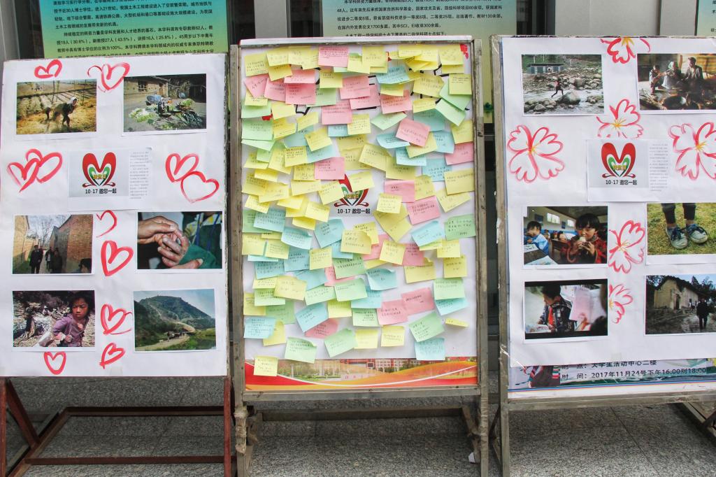 下午四点,活动正式开始,同学们在工作人员的指引下进行签到、观看。课桌前渴望读书的大眼睛,站在山顶眺望远方的孩子,破旧的教室......同学们望着一张张震撼人心的照片,写下一句句发自肺腑的言语,“祝愿贫困地区的孩子们早日过上幸福的生活”,“非常难过,感觉自己更应该珍惜现在的大学生活,好好学习,报答父母,回报社会!”