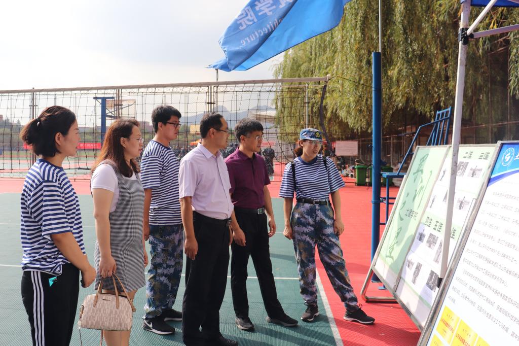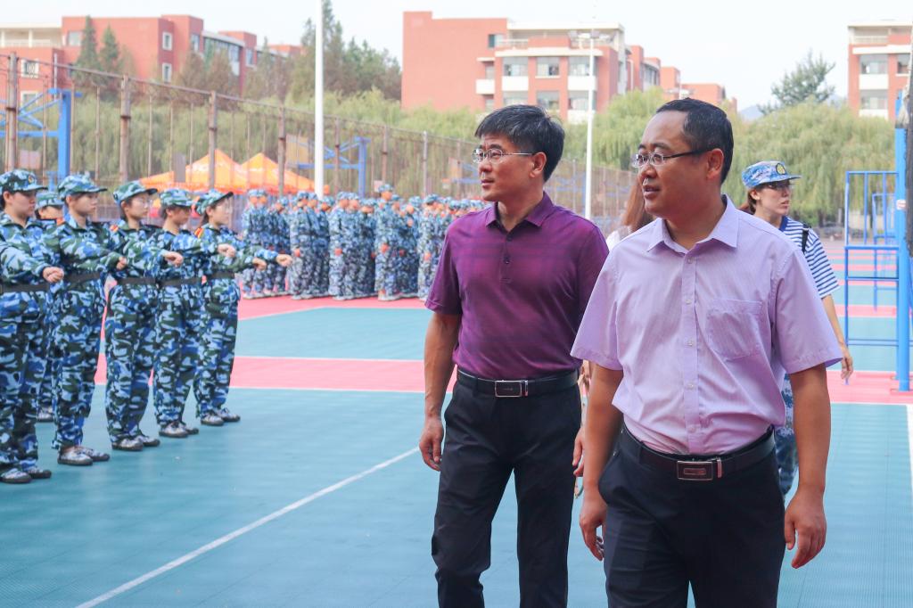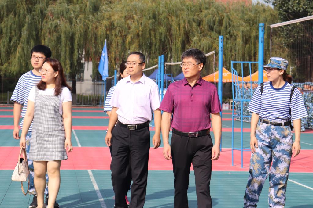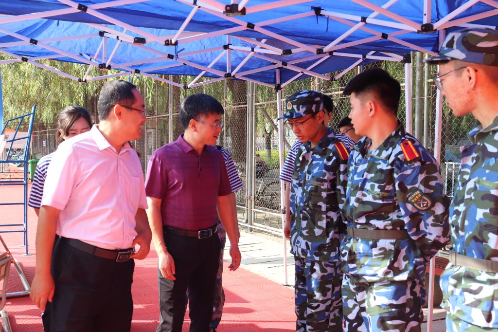 上午,beat365官网党委副书记(主持工作)宋西路、院长王崇革在团委书记于娜及19级辅导员的陪同下前往训练场地,对新生军训的情况进行了详细了解和指导,对在场工作人员进行了慰问,对因伤无法参训的同学们表示关心,对军训场地布置和宣传工作进行了视察。学院领导还进入训练场地,驻足观看学生们的训练情况,与各位教官进行了交流,对他们的耐心指导和辛苦付出表示了感谢。