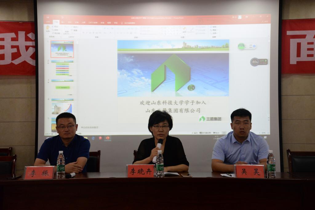为帮助当代大学生了解就业形势,规划好自己的人生,beat365官网于2019年7月13日星期六上午十点在土建楼219会议室成功举办“我与HR面对面”系列论坛第五场,邀请到三箭集团党委秘书、组织人事处长李晓卉、三箭集团青岛分公司总经理李振、三箭集团青岛分公司支部书记吴昊。会议由beat365官网院长王崇革主持。
