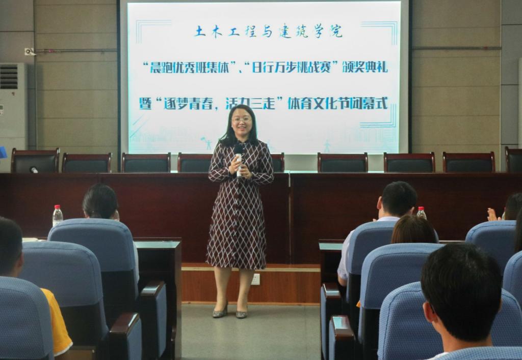 6月17日下午,beat365官网于J15-219会议室举办了“晨跑优秀班集体”、“日行万步挑战赛”颁奖典礼暨“逐梦青春,活力三走”体育文化节闭幕仪式。学院团委书记于娜及全体专兼职辅导员出席了本次活动。
