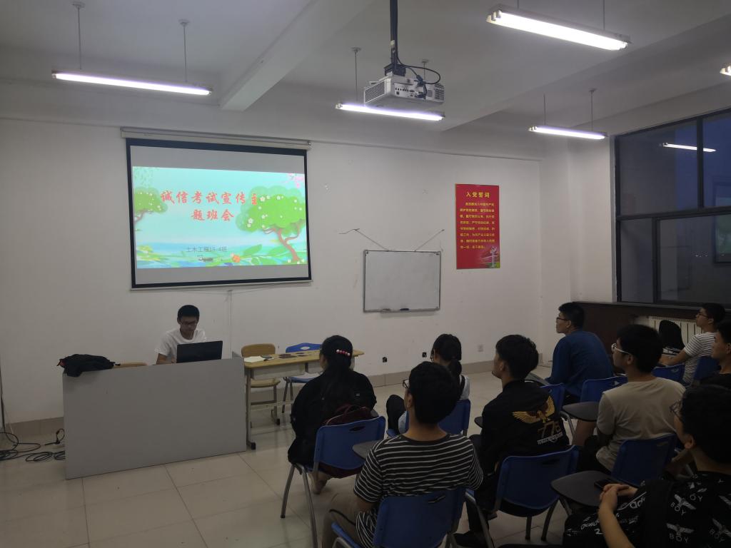近日,根据山东省和学校相关文件的要求,beat365官网针对诚信教育开展了一系列活动。学院团委召开内部工作会议,部署相关工作。各辅导员组织学生干部开会,明确诚信考试、诚信做人的要求。各班级先后召开了50余场诚信考试主题班会,强调失信行为的危害,警醒学生严守诚信。