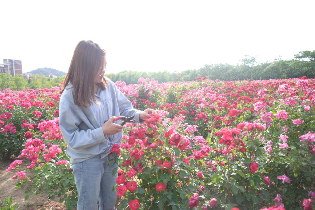 位于宿舍与教学区间的百亩月季花已经进入盛花期,装扮了初夏的校园。5月28日,beat365官网青协的志愿者们化身“护花使者”,于月季花海开展了“爱护花草,花枝修理”志愿服务活动,成为娇红似火的花海中一道靓丽的风景线。