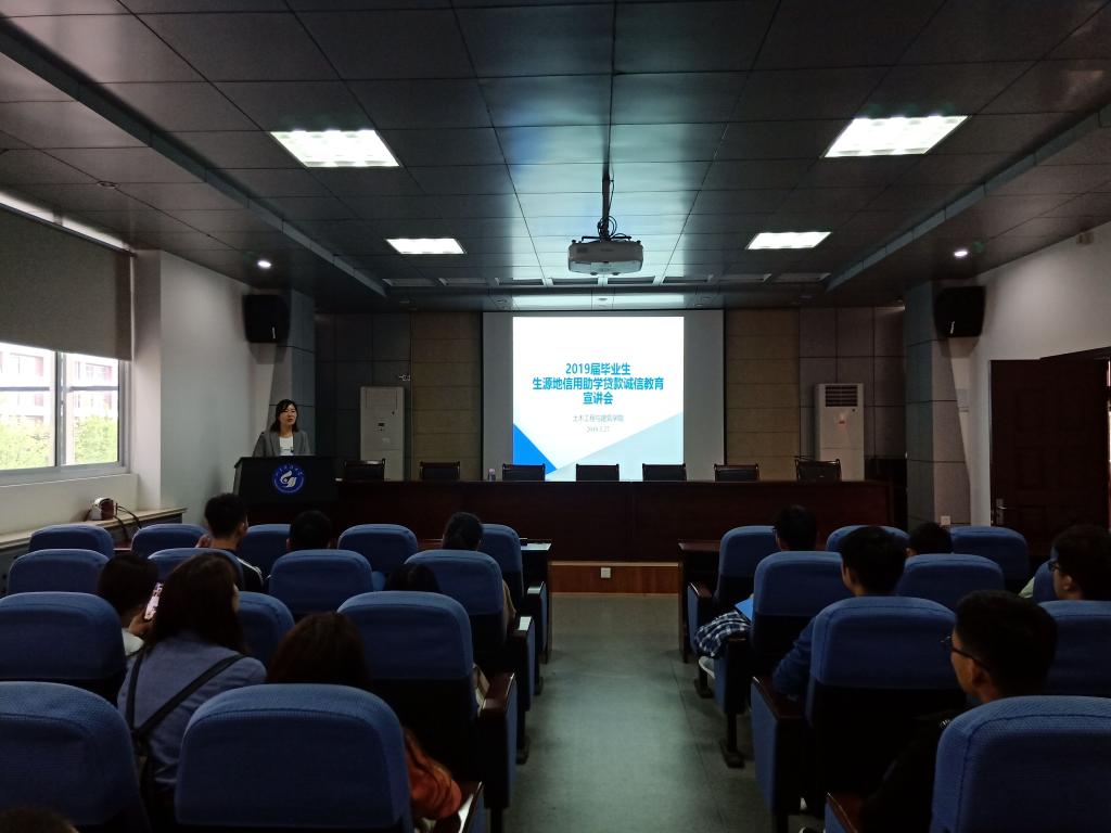 倾心助学,为梦想插上翅膀;感恩还贷,给人生许下承诺。5月27日下午,beat365官网在J15-219举行2019届毕业生生源地信用助学贷款诚信宣讲会,学院相关毕业生参会,会议由团委老师鲍娜娜主持并主讲。