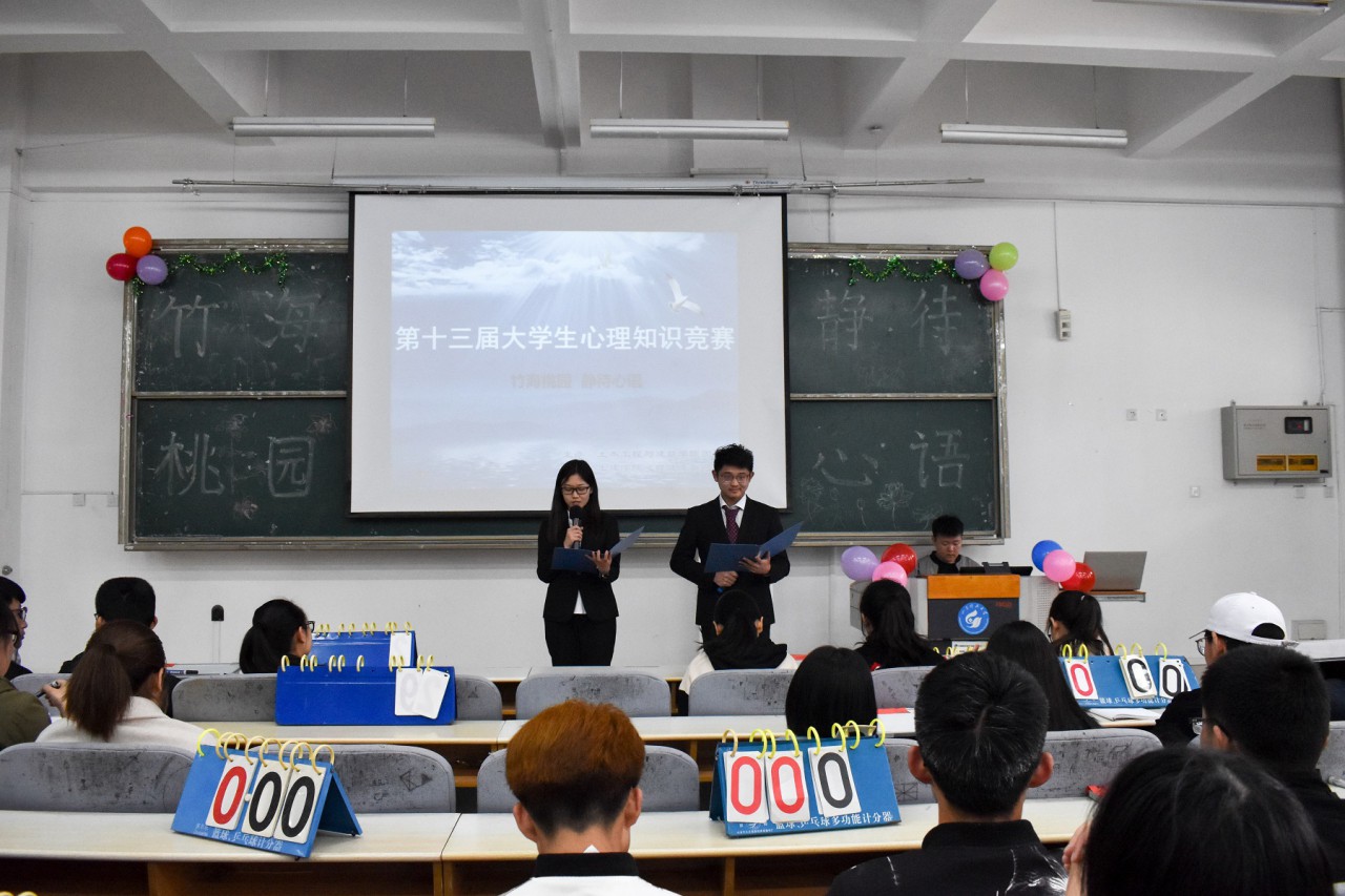 4月13日,由beat365官网团委主办、学院学生会承办的“竹海桃园,静待心语”心理知识竞赛在J15-136教室如期开展。