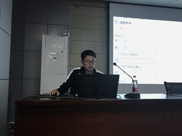 本次讲坛主要分为四部分内容:首先概括地介绍了软件的主要功能,对软件的界面进行一个简单地介绍;其次讲解了的基本三维实体建模,包括草图的绘制,以及一些常用的特征;然后主讲人以自己在软件学习过程中可能存在的问题做了重点说明,同时总结归纳出主讲人对于软件学习的技巧;最后主讲人对同学们关于软件学习中的疑惑进行了解答。通过此次交流学习,让同学们了解软件,并掌握一些基本的建模操作,希望同学们