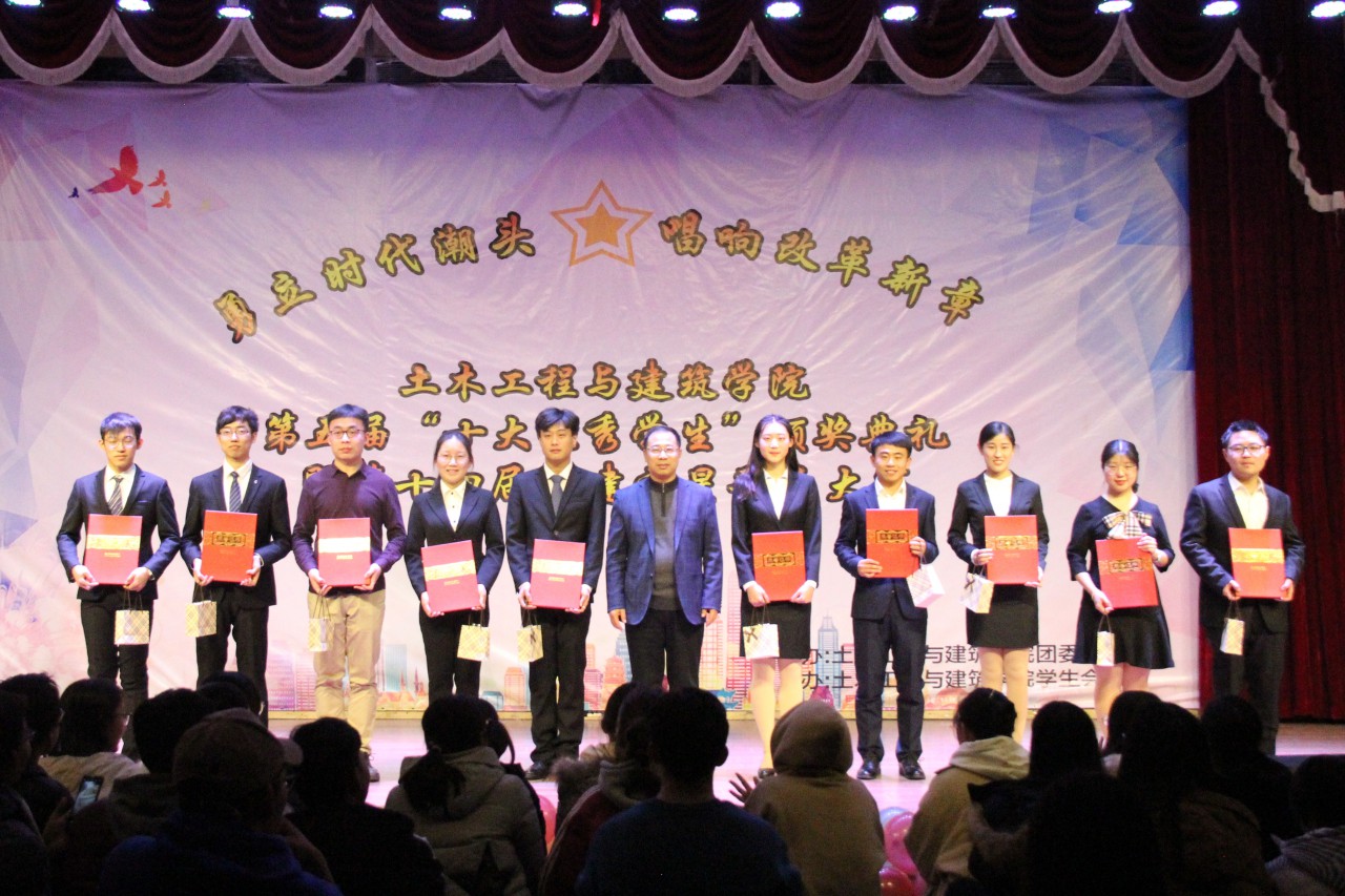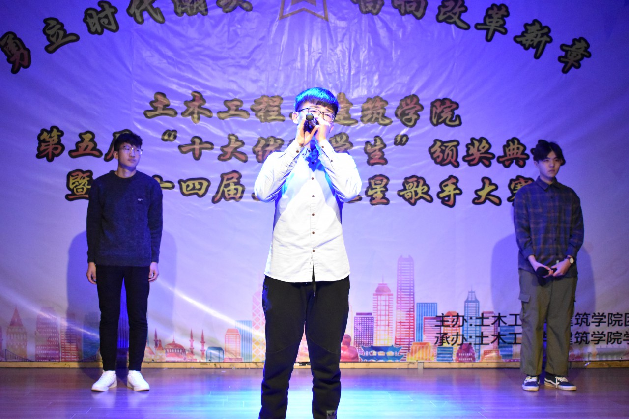 12月12日晚,beat365官网在大学生活动中心成功举办第五届“十大优秀学生”颁奖典礼暨第十四届“勇立时代潮头,唱响改革新章”土建之星歌手大赛。到场的嘉宾有beat365官网乔卫国院长、郝亮副书记、王崇革副院长、党政办郝兆青主任、团委于娜书记及团委所有专兼职辅导员。担任本次活动的评委有校大学生艺术团副团长闫肖帆、beat365官网学生会主席陈子璇、校大学生艺术团声乐队副队长陈登阳、校大学生会素质拓展部主席王轶涵、校学生会素质拓展部副部长孙钰鹏、校第十四届校园歌手大赛冠军王博学、校N.O.B街舞协会会长孙小翔。