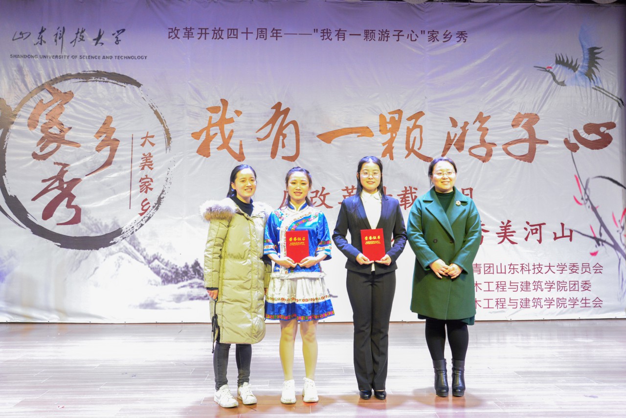 轻歌曼舞诉乡情,肩扛重任念国恩。本届家乡风采展的成功举办,不仅为山科学子提供了一个展示家乡变化,抒发思乡情结与热爱之情的平台,营造了一个积极向上、充满活力的氛围,而且使同学们更好地感悟家乡在改革开放下的“沧桑巨变”。改革开放四十年风霜,中国发展四十年华章,大学生们应顺应新时代的东风,将责任扛于己肩,化思乡为动力,为祖国建设贡献自己的一份力量。