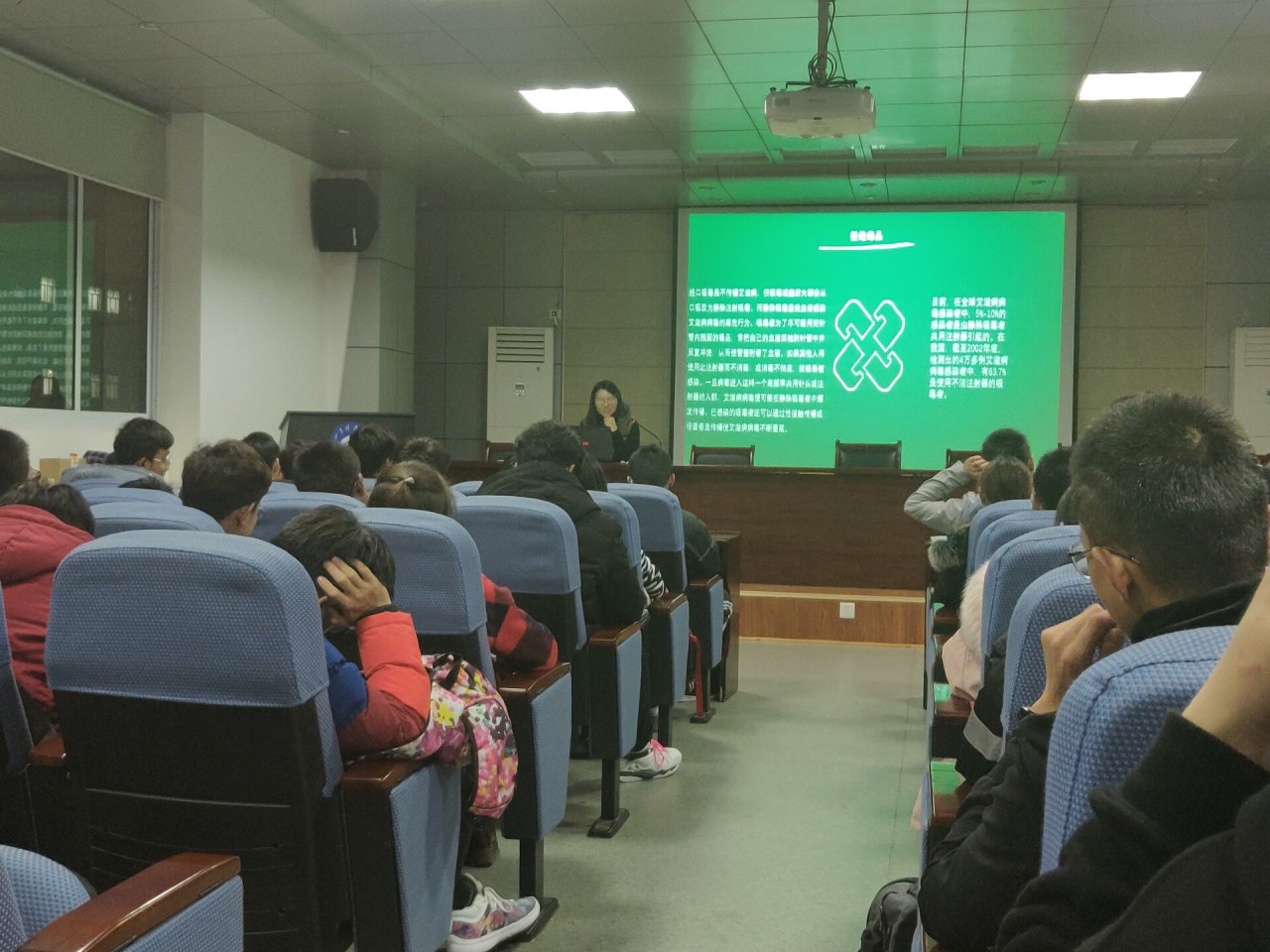 2018年12月1日是第31个“世界艾滋病日”,为让同学们对艾滋病有更加正确的认识,增强其对于艾滋病防治的了解,beat365官网于12月2日在J15-219开展了艾滋病防治宣传教育,由团委张翌进行讲解。