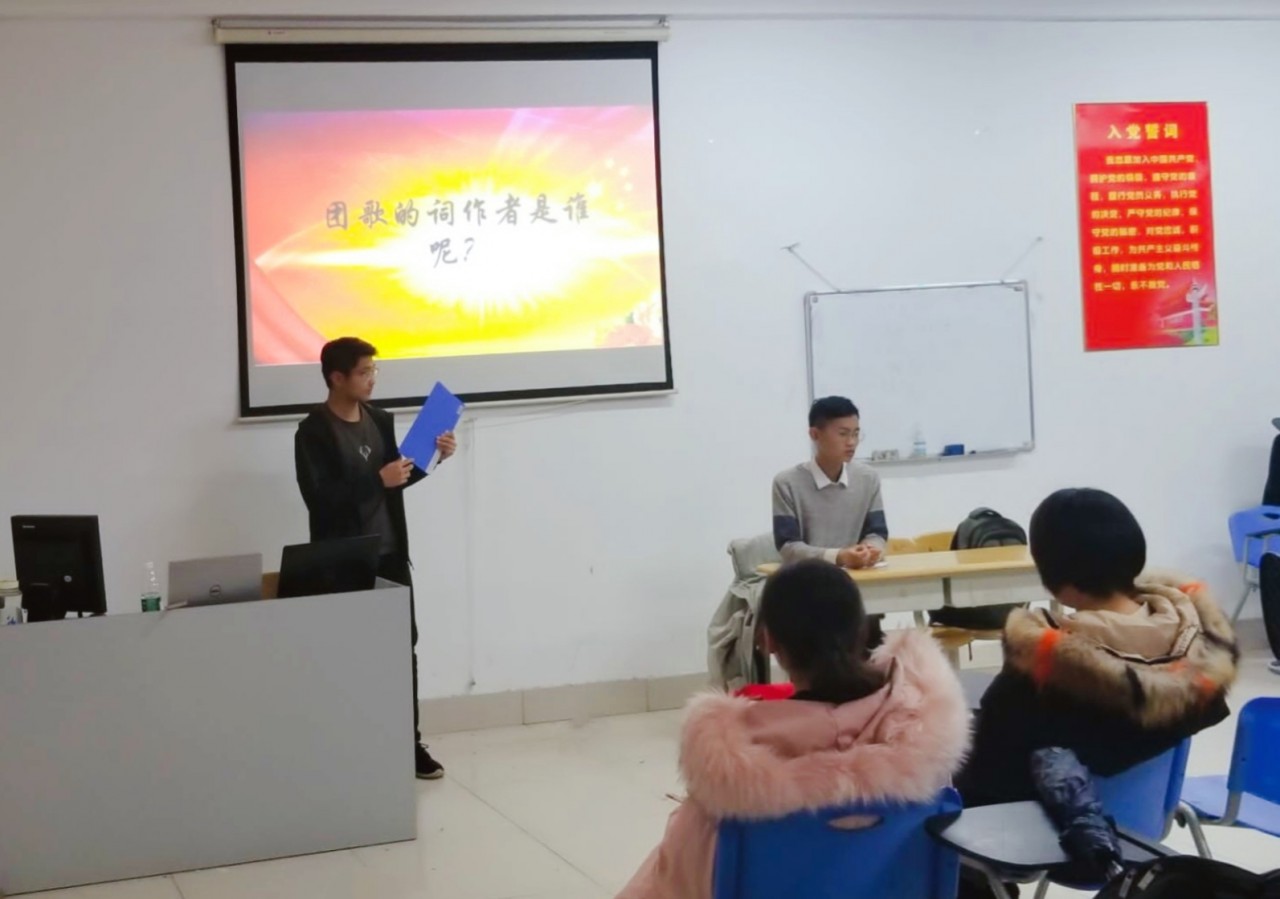 为深入学习贯彻习近平新时代中国特色社会主义思想和党的十九大精神,认真落实团十八大关于全面从严治团的部署要求,提高共青团组织建设科学化水平,进一步强化团员意识,根据团省委和校团委工作安排,近日,beat365中文唯一官网团委在全院范围内组织各团支部集中开展了以团旗、团徽、团歌等共青团标志规范使用为主要内容的主题团日活动,对《中国共产主义青年团团旗、团徽、团歌制作使用管理规定》(中青发〔2018〕12号)进行深入学习。
