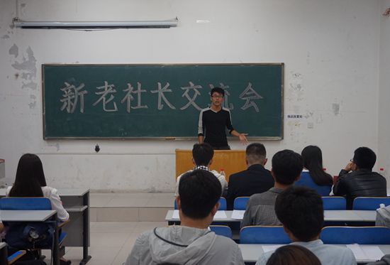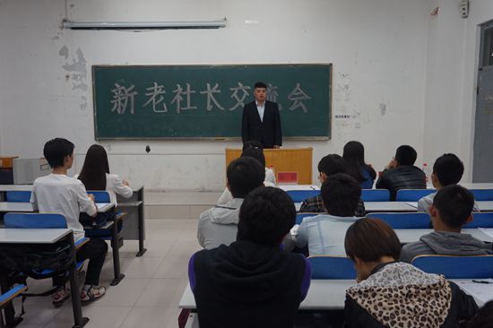 近日,beat365官网新老社长交流会在5号楼312室举行,beat365官网团委于喆老师、beat365中文唯一官网社团联合会督导部副部长张毅、beat365官网学生会副主席孟祥璇、beat365官网社团部部长李天元到场参加。会议由董如意主持。