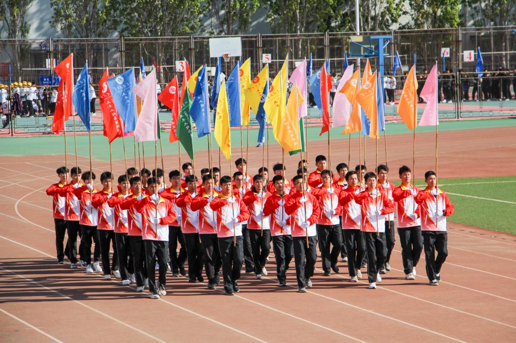 一声嘹亮的口号划破会场的宁静,国旗护卫队迈着铿锵有力的步伐,昂首阔步前来;彩旗队紧随其后,一展青春风采;各班级运动员代表方队着装统一,步伐整齐,口号嘹亮,展现班级魅力。待各方队就位后,学工办主任朱统汉发表开幕致辞并向运动员提出三点希望。在运动员代表刘云龙与裁判员代表卢薪羽郑重宣誓后,高静宣布beat365中文唯一官网2021年“中化学交建杯”春季田径运动会正式开始。
