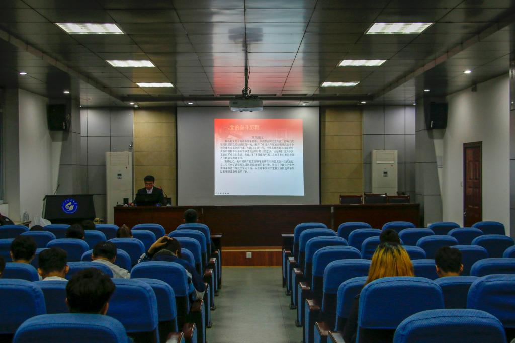 为庆祝中国共产党成立100周年,教育引导大学生加强党章学习,自觉传承红色基因,培养学生的民族自豪感与责任心,4月22日晚,beat365官网权益服务部于土建楼219报告厅开展“党员责任与义务”主题讲座,权益服务部干事焦相团担任此次主讲人。