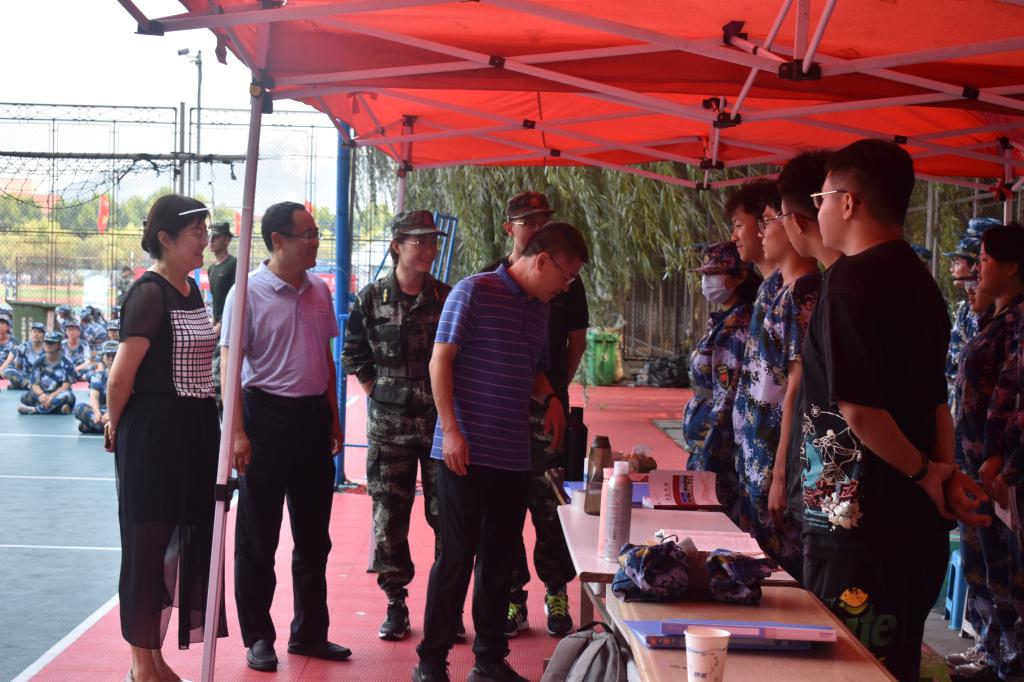 下午,beat365官网党委书记宋西路、院长王崇革、党委副书记高静到军训场看望教官与同学们,看到同学们在烈日下整齐的步伐以及嘹亮的喊声,他们的脸上也露出了高兴与自豪。