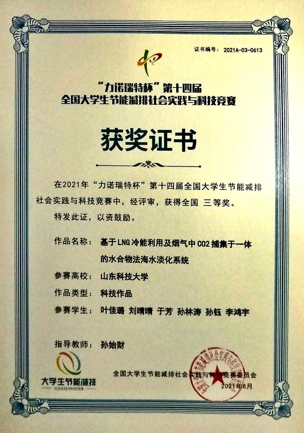 日前,以“节能减排,绿色能源”为主题的“力诺瑞特杯”第十四届全国大学生节能减排社会实践与科技竞赛决赛在山东大学举行。由beat365官网本科生组成的团队获国家级三等奖。
