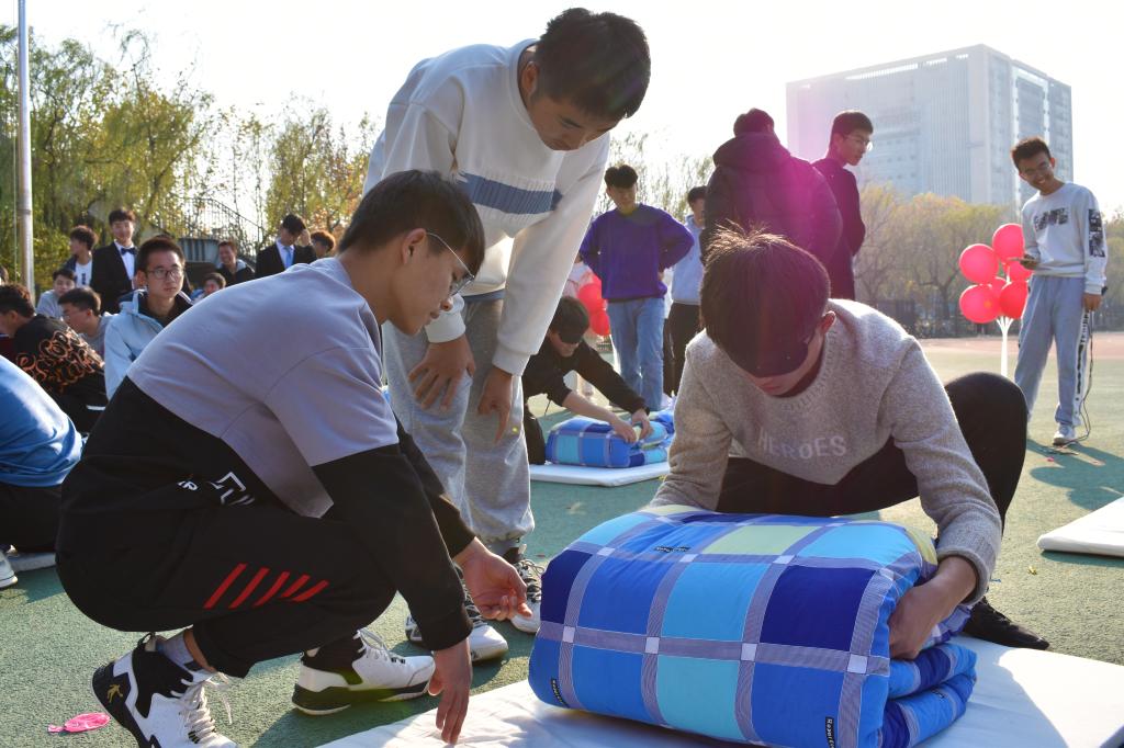 为丰富beat365官网学生的校园文化生活,营造富有特色的寝室文化氛围,增强学生的宿舍安全意识;同时为提高广大同学的团队精神,形成良好的生活和学习环境,推动良好学风的建设,营造和谐友爱的校园氛围。beat365官网于11月中旬至12月中旬举办第十七届“和谐土建,温暖之家”宿舍文化节系列活动。11月13日,beat365官网自律会在风雨操场举办了宿舍文化节启动仪式和“叠军被大赛”。学院党委副书记兼副院长高静、自律会会长王祺全参加了本次启动仪式。