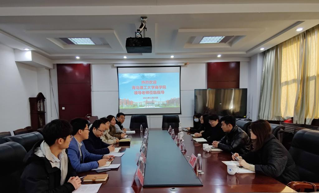11月25日,青岛理工大学商学院党委副书记李慧,学工办主任薛诚,学工办辅导员杨洪敏、孙楚、藏瑶瑶一行到访beat365官网。beat365官网党委副书记高静,学工办主任朱统汉,学工办辅导员鲍娜娜、刘超、刘泽群、研究生第一党支部书记韩一鸣参加了座谈会。