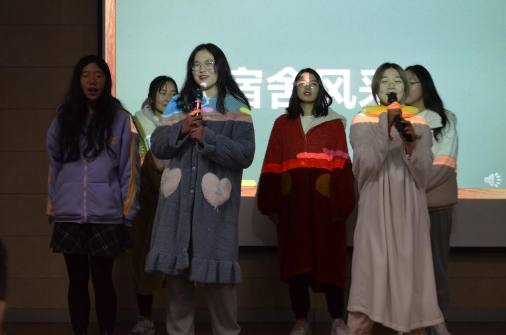 本次宿舍风采展示大赛每支参赛队伍的展示分为两部分:第一部分为宿舍情况汇报,通过制作精美PPT作品或自己拍摄的视频来展示自己宿舍的故事,参赛选手有序发言,展现了良好的宿舍氛围,通过参赛选手的展示也让现场观众认识到了良好宿舍氛围的重要性;第二部分是宿舍才艺展示,参赛宿舍成员通过丰富多彩的才艺展示,展现了21级学生积极向上的生活态度和朝气蓬勃的精神面貌。比赛最后,根据参赛选手PPT的解说及宿舍才艺的展示,经评委打分,获得一等奖的宿舍为GB15-512;获得二等奖的宿舍为GB2-134、GA15-514;获得三等奖的宿舍为GB2-203、GB2-142。