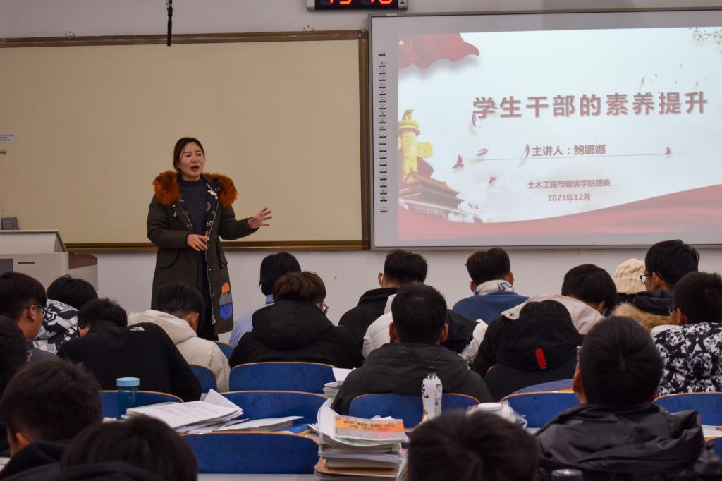 为进一步加强beat365官网基层团干部队伍建设,提升基层团干部的理论素养和工作水平,建立思想引领成效好、组织运行活力强、工作开展活力强、团员参与活力强、宣传展示活力强的基层团支部,3月13日,beat365官网在S1-205教室开展团支部委员培训班,beat365官网团委辅导员老师鲍娜娜应邀为2021级全体团支部委员进行培训。