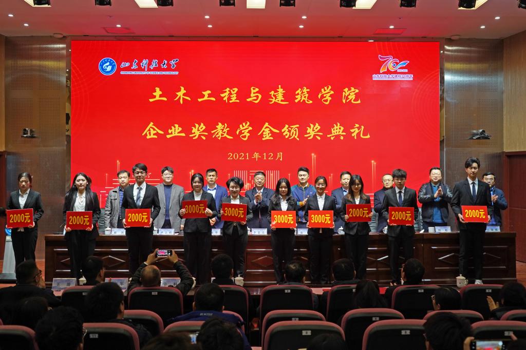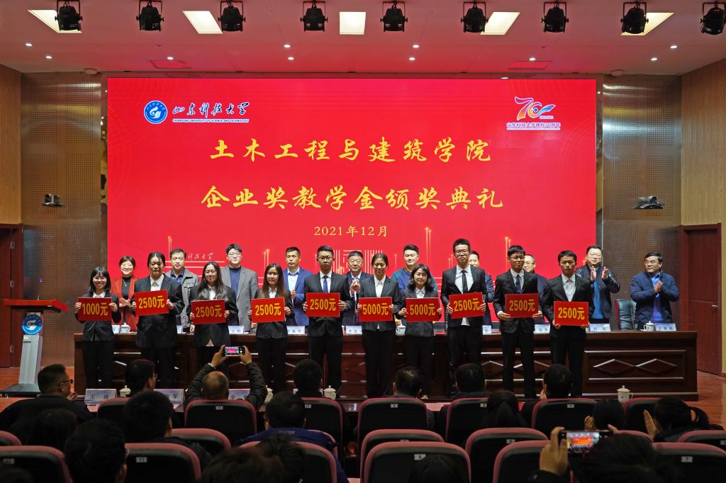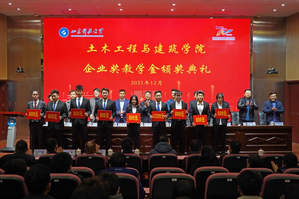 12月19日,beat365官网企业奖教学金颁奖典礼在J9-144报告厅举行。山东华滨建工有限公司党支部书记李志连、烟台平安信息工程职业技能培训学校校长宋洋、日照市政集团常务副总经理娄善华、山东省路桥集团青岛分公司党总支书记曹建军、校团委书记尹立明、学生工作处副处长靳凯、研究生工作部副部长刘松、合作发展处副处长王荣超、beat365官网师生代表参加了本次颁奖典礼。典礼由beat365官网党委副书记高静主持。