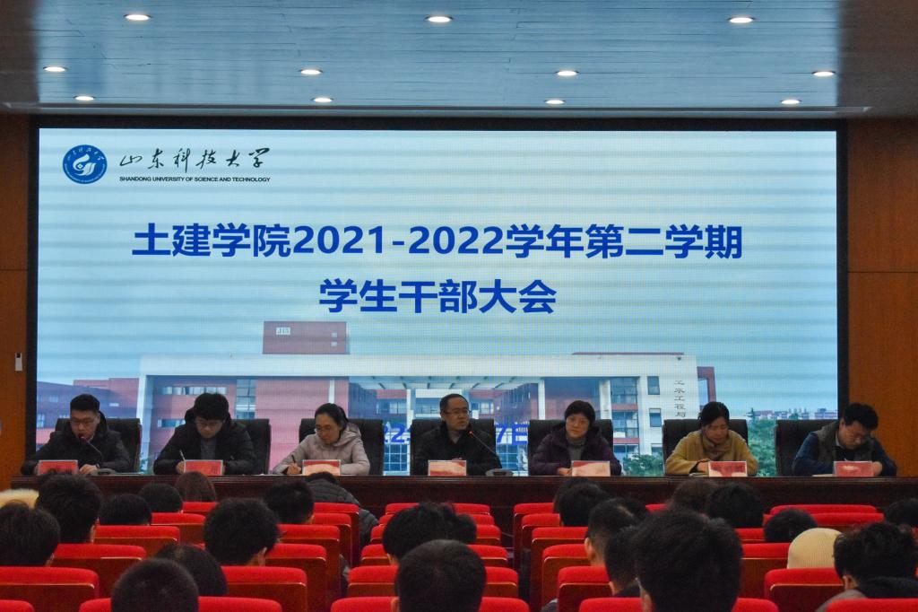 2月27日下午,beat365官网召开新学期学生干部大会。院长王崇革、党委副书记高静、学工办辅导员老师以及主要学生干部参加会议。会上,高静对2021年学团工作进行全面总结,凝练2022年工作要点,部署开学前后各项任务,同时鼓励同学们要以“起跑就是冲刺,开局就是决战”的姿态迎接新学期的到来。王崇革倡导学生干部要树立“严、真、细、实、快”的工作作风,同时他对同学们提出两点要求:一要传承土建优良传统,从一批批优秀校友中汲取营养;二要发扬敢为人先的创新精神,以“敢为天下先”的自信和勇气,不畏挫折,勇攀高峰。