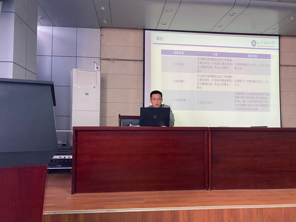 会上,李兆磊就省内十六地市的人才引进政策进行总结提炼,他从生活补贴、购房补贴、创业补贴三方面进行讲解,详细地介绍了省内各地市的毕业生住房补贴、青年人才安家政策、人才住房保障、青年创业补贴情况以及各类补贴的限制条件。接着,他针对各地市的特色人才引进活动进行分享,并就到场研究生的提问进行细致解答。最后,李兆磊向到场研究生推荐了常见的人才补贴政策查询途径,鼓励同学们积极进行职业规划,提前做好信息收集和政策解读工作。