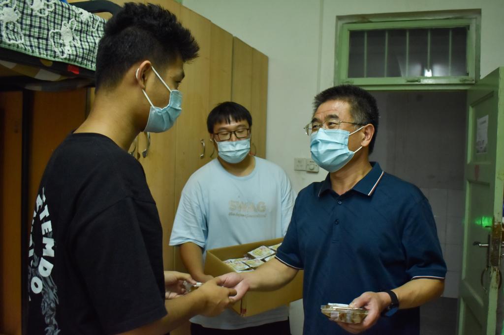 金秋送爽,丹桂飘香。为了使2022级新生在中秋佳节感受到学院的关怀与温暖,9月9日上午,beat365官网党委书记宋西路、院长王崇革、党委副书记兼副院长高静,在新生辅导员的带领下走进宿舍、走近学生,给2022级新生发放中秋月饼,送上节日的暖心祝福。