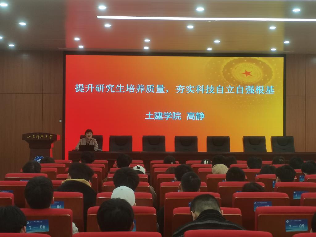 为了进一步营造研究生的学术氛围、增进研究生的综合素养。4月7日上午,beat365中文唯一官网在J15-136举办了“提升研究生培养质量,夯实科技自立自强根基”专题报告会。本次报告会由学院党委副书记、副院长高静主讲,研究生辅导员史卫平主持,2022级全体硕士研究生参加会议。