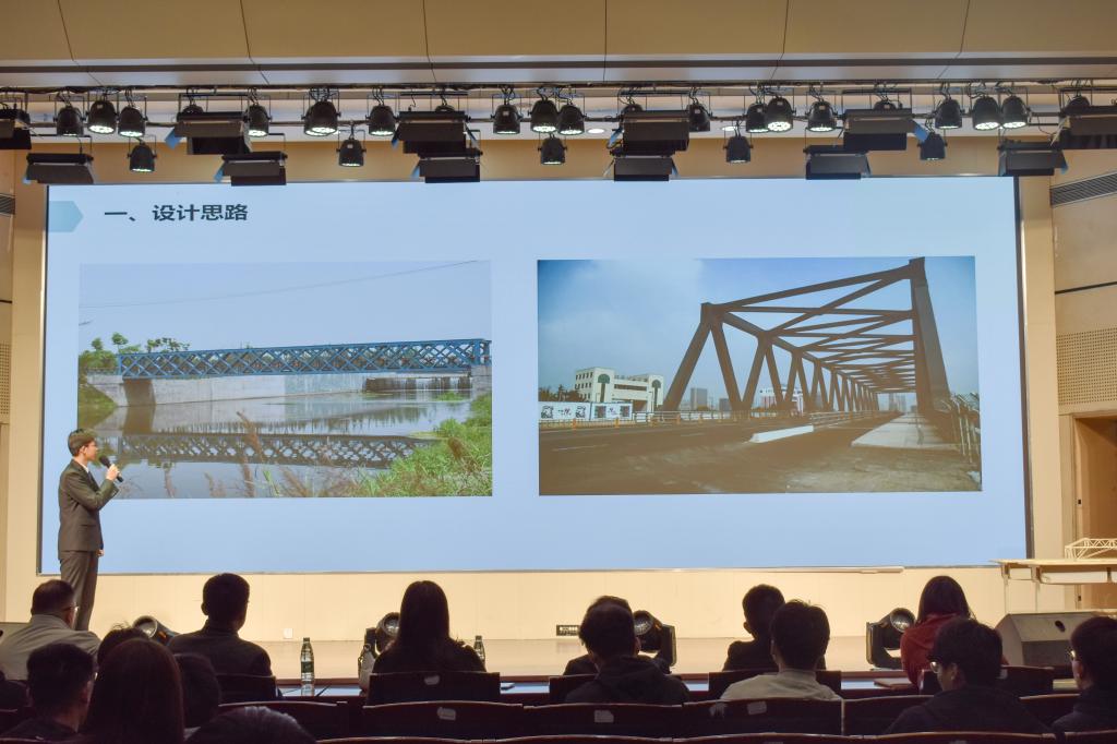 比赛要求采用胶水、木条为材料,搭建一座桥梁模型,以模型承受最大重量与美观度为胜负决定因素,参赛队伍通过PPT和模型展示等方式向赛事评委介绍自己的作品,讲述作品设计的合理性和设计理念。各位评委向各队提问并对各参赛队伍作品做出评价,提出改进建议。工作人员通过对各队伍的桥梁模型进行静力动力承重测试检验作品质量测试得出相应的参考数据。