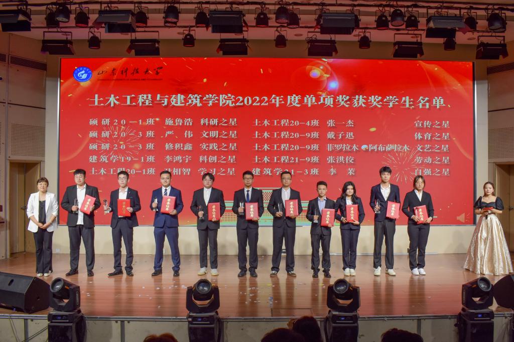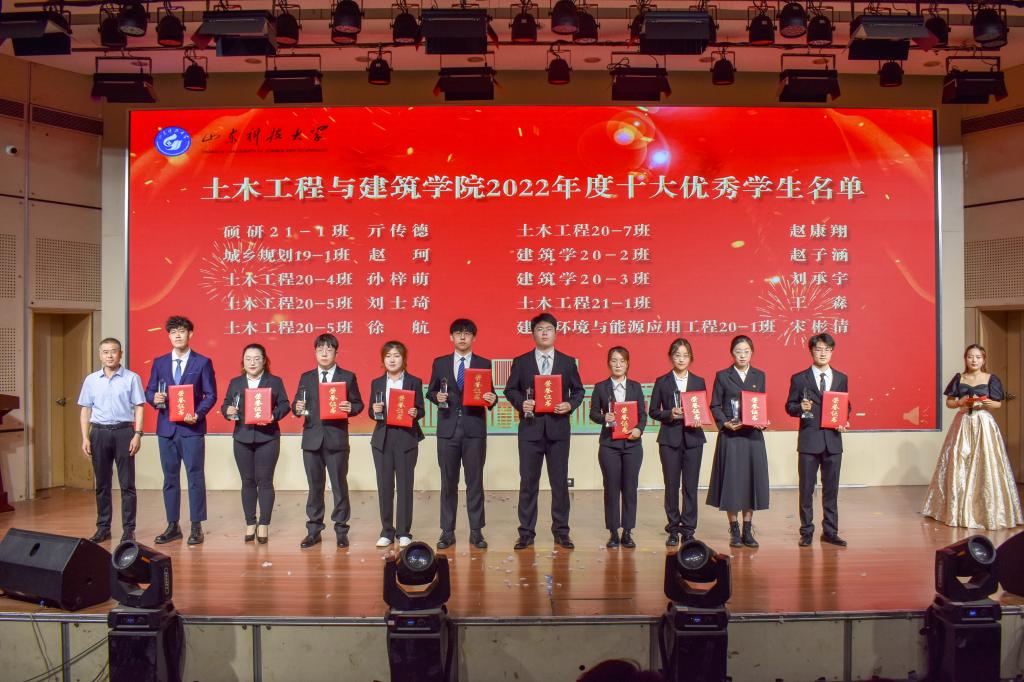 在“十大优秀学生”颁奖环节中,一段段VCR精彩纷呈,展示了beat365官网十大优秀学生的傲人风采,展现了土建学子担当时代责任和勇于砥砺奋斗的精神风貌。获得beat365中文唯一官网“2022 年十大优秀学生”称号的分别是亓传德、赵珂、刘士琦、孙梓萌、徐航、赵康翔、宋彬倩、赵子涵、刘承宇、王森。他们是土建学子的优秀代表,他们的优秀事迹激励广大同学奋勇争先、一路向前、永不言败。