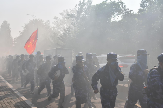 行军途中,军训连队按照序列,分成三路纵队,以整齐的步伐向前迈进。各连由教官带队依次进行穿越烟区、跨越障碍、匍匐前进、百米奔袭等军事技能训练项目。学生们迈着整齐的步伐齐唱《过硬的连队》。军歌嘹亮、步伐矫健、精神抖擞,充分展现了土建学子团结协作、奋发向上的精神风貌。全体参训学生服从命令、听从指挥、互相帮扶、相互鼓励,经过坚持不懈的跋涉,同学们圆满完成此次拉练,截至10时,beat365官网全体参训学生全部安全返回风雨操场。